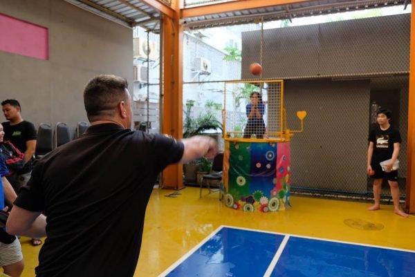 There was a lot going on at the fair. The students did a fantastic job cooking snacks for the rest of the school. These included french fries with a choice of topping, pork and chicken, spicy noodles, and a variety of drinks. Activities included the much anticipated balloon stomp where only one student could win. There was a raffle for a trendy pair of sneakers. Perhaps the highlight though was the dunk tank. This provided students the opportunity to dunk their classmates and teachers alike and provided a great source of entertainment!