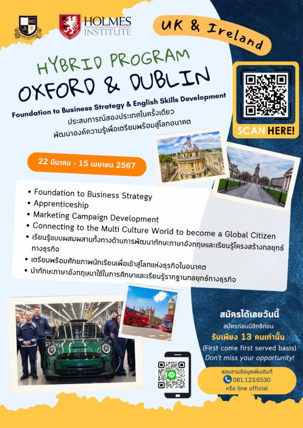 โรงเรียนมัธยมปัญญารัตน์ร่วมกับ Holmes Institute จัดโครงการ Hybrid Program 2 ประเทศ (UK & Ireland) สำหรับนักเรียนชั้น ม.2 – 6