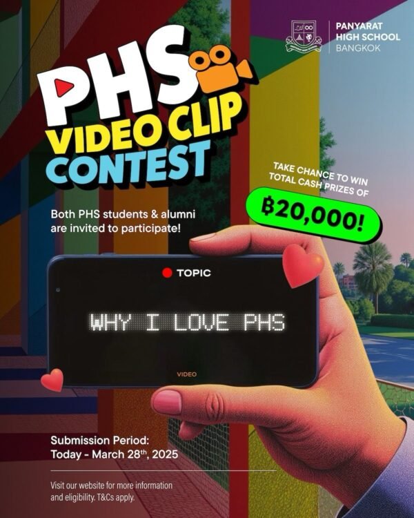 Interested students and alumni are invited  in the “Why I Love PHS” Video Clip Contest for a chance to win cash prizes totaling 20,000 baht, along with certificates.